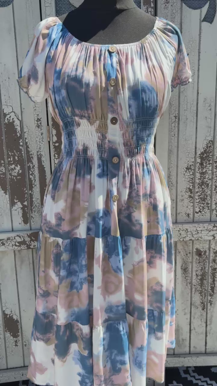 Ladies Summer Bardot Midi Dress – Abstract Print (One Size 10-20) – Pastel