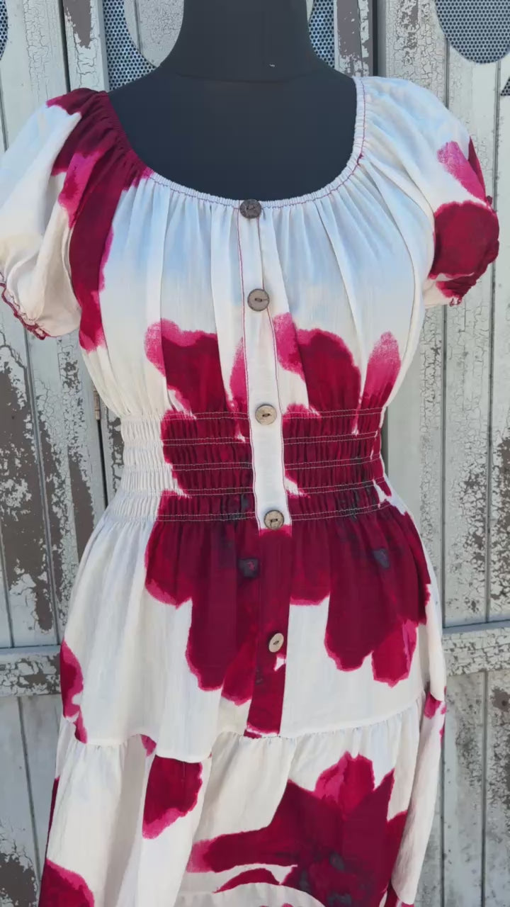 Designed with a stretchy, elasticated neckline, this Bardot dress can be worn on or off the shoulder, giving you the flexibility to style it your way — from beach days to garden parties. The short elasticated sleeves add a gentle ruffle that enhances its boho-chic appeal.