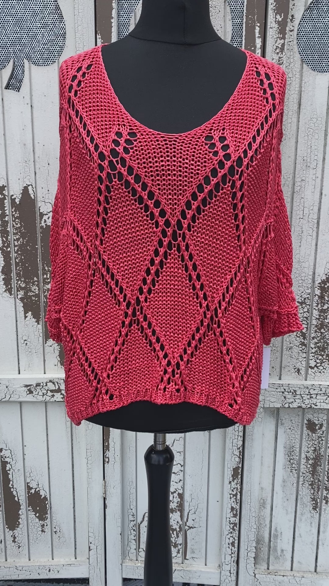 Featuring ¾ length sleeves and a soft V-neck, this knit offers a relaxed yet flattering fit. Made from 100% cotton, it’s breathable, comfortable, and easy to style over vests, dresses, or swimwear for a chic layered look.